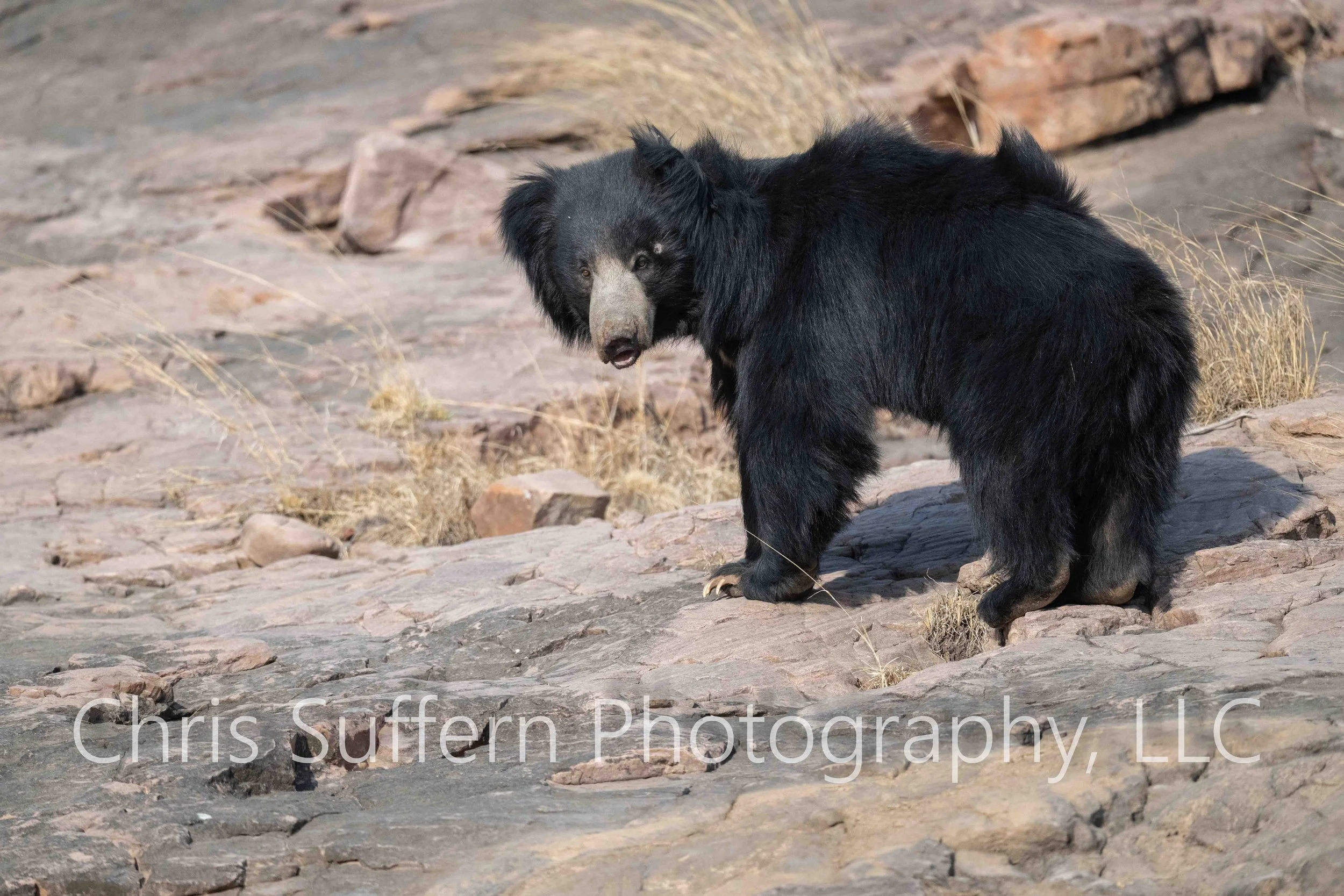 17 unique tigers in 5 days. Many frolicking cubs, several cooling off in water bodies, and a couple passerbyers, but the most special sighting was on the last day of the last safari. Driving along a canopied road a jeep ahead of us spotted a sloth bear climb into the nearby bush along small hill. An amazing find, but the animal was secluded by thick bush- only rustling of trees and a dark shadow could be appreciated. We tracked it’s movement until the unbelievable was uncovered. About 50 meters ahead of the beast was Arrowhead, the female from our first drive. Standing still, salivating from apprehension, it waited for the bear to make a closer approach. Who was to make the first move? As we slowly crept closer we heard a deep bellicose growl and aggressive movement towards Arrowhead. She ran down the hill towards my jeep avoiding the bear’s advance. The bear scurried across the adjacent creek and made it’s way up a rocky hill to avoid and any further altercation with the powerful tiger. I’d say the bear won this round. Ikram was ecstatic and stated that these interactions are rare and that he last witnessed anything similar was over 10 years ago.
